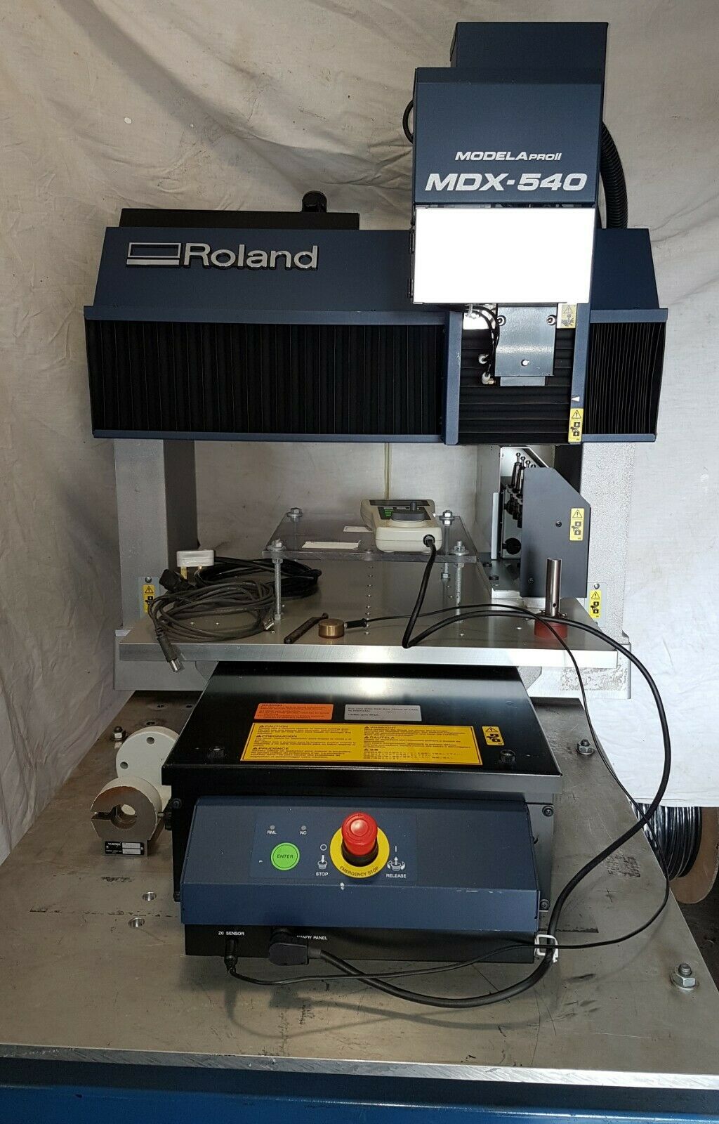 Roland MDX-540A CNC milling machine, barely used and looks like new, this machine doesn't appear to have done any hard work. I believe the original owner was a jeweller, I made a small test piece from perspex and it has been in storage ever since as my business changed to more consultancy.
